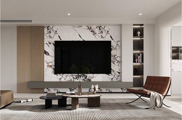 桃木茶几+大理石纹背景墙,冷调高级感瞬间拉满~
