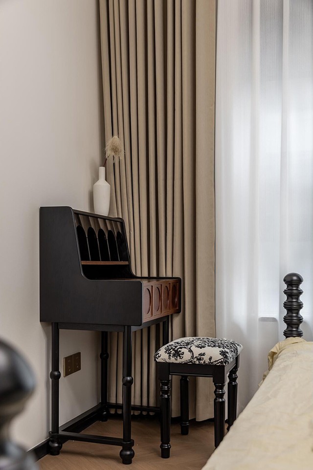柱设计自带复古滤镜,搭黑白碎花床品,慵懒又高级~